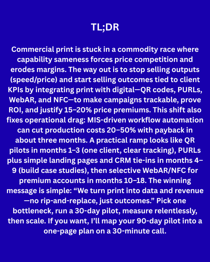 When you can close that gap—when you can position print-to-digital integration as the way your clients hit their marketing KPIs—you’re no longer a commodity. You’re a strategic partner. And strategic partners don’t negotiate on price.